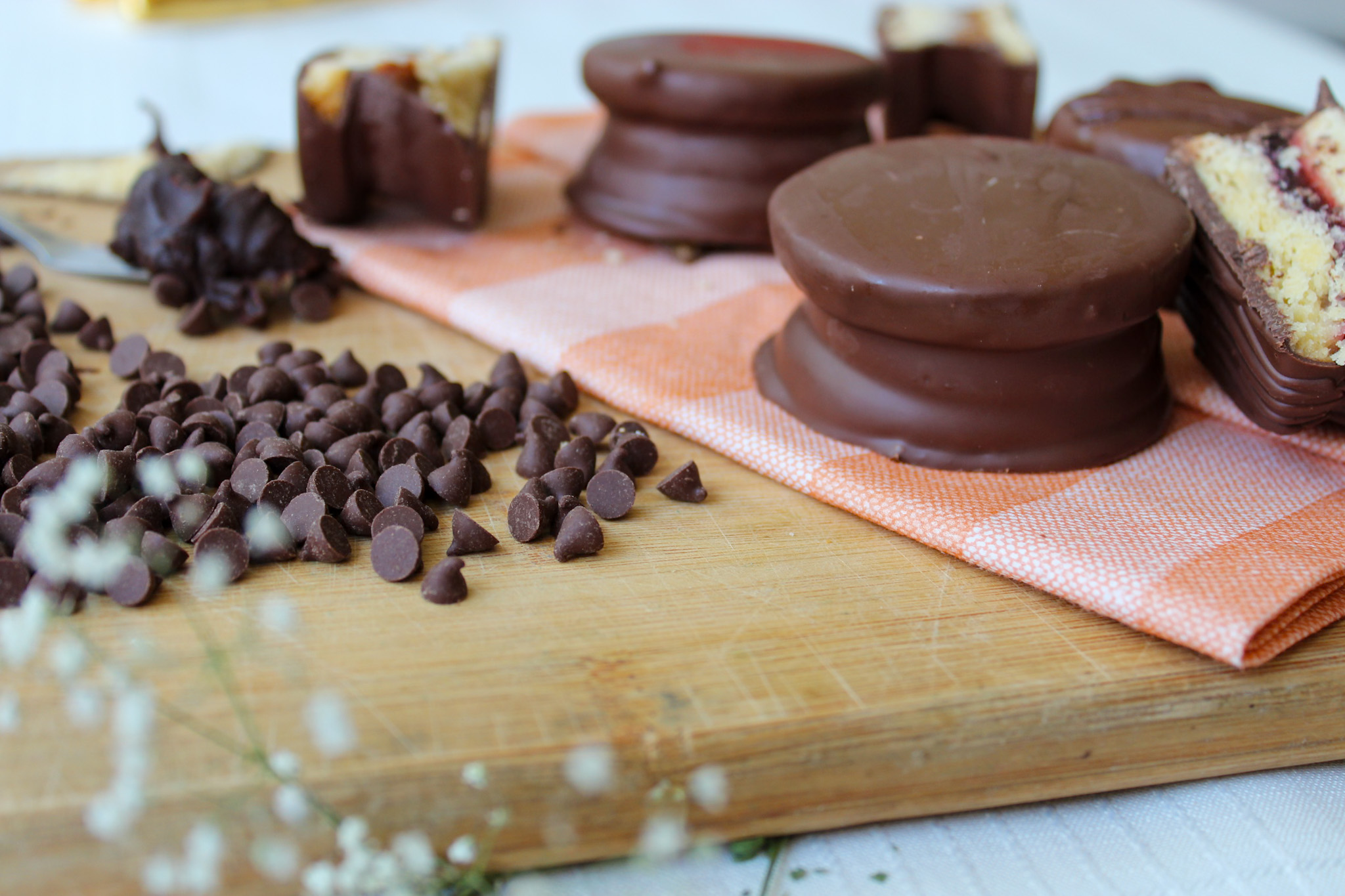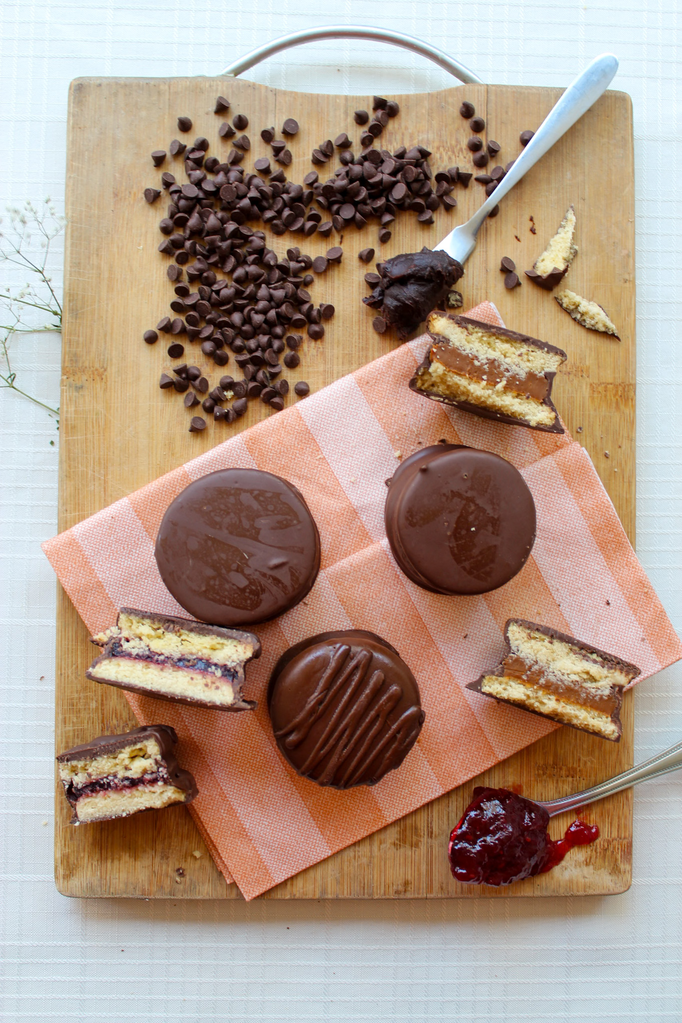 Galleta artesanal rellena de manjar blanco, cubierto con chocolate semi amargo. Pack de 6 unidades